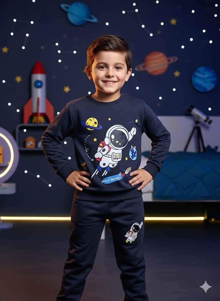 Space Astronaut printed kids winter tracksuit is specially designed for little explorers who love space, adventure, and comfort. Crafted with premium-quality cotton fleece, this tracksuit keeps your child warm while staying soft and gentle on the skin.